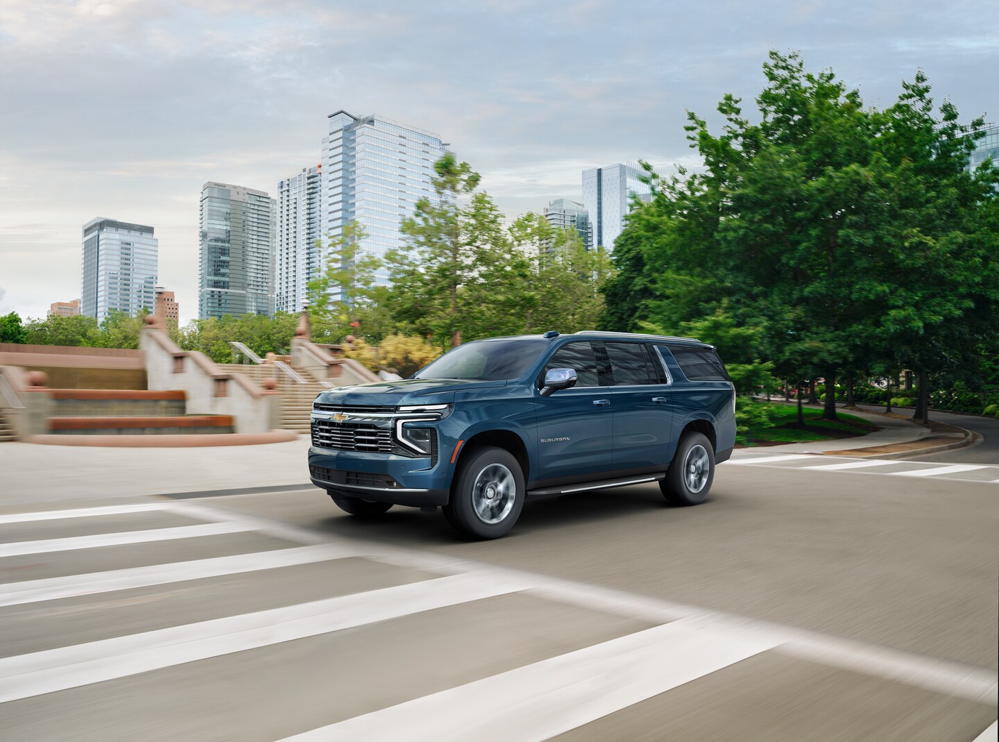 With its sturdy body-on-frame construction and advanced suspension systems, the Suburban delivers a smooth, comfortable ride and confident handling. When properly equipped, the Suburban can tow up to 8,300 pounds, making it an ideal choice for families with boats, campers, or trailers.