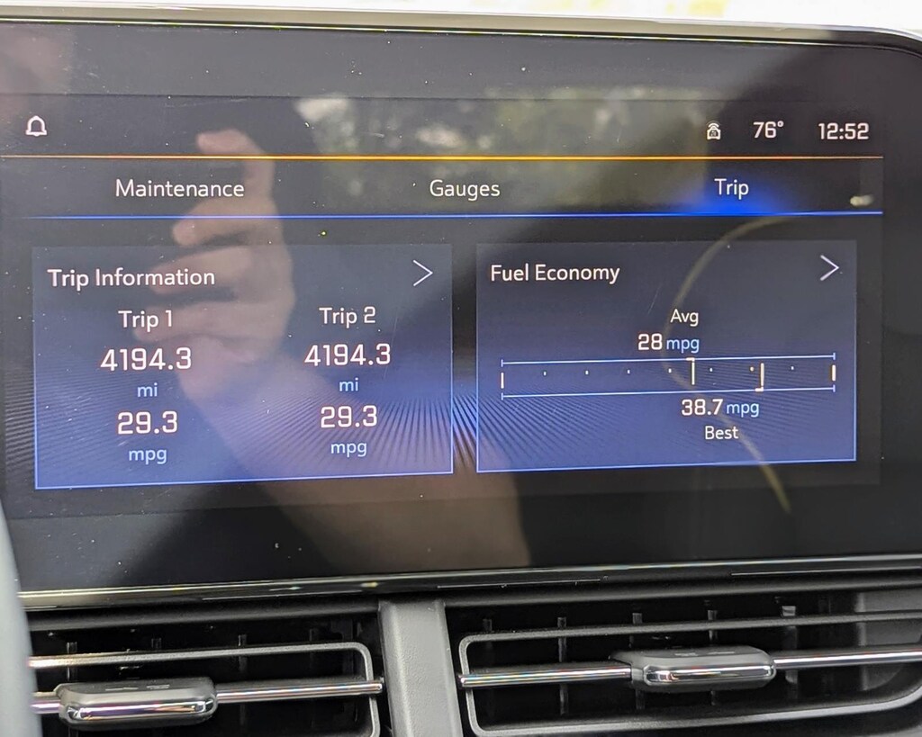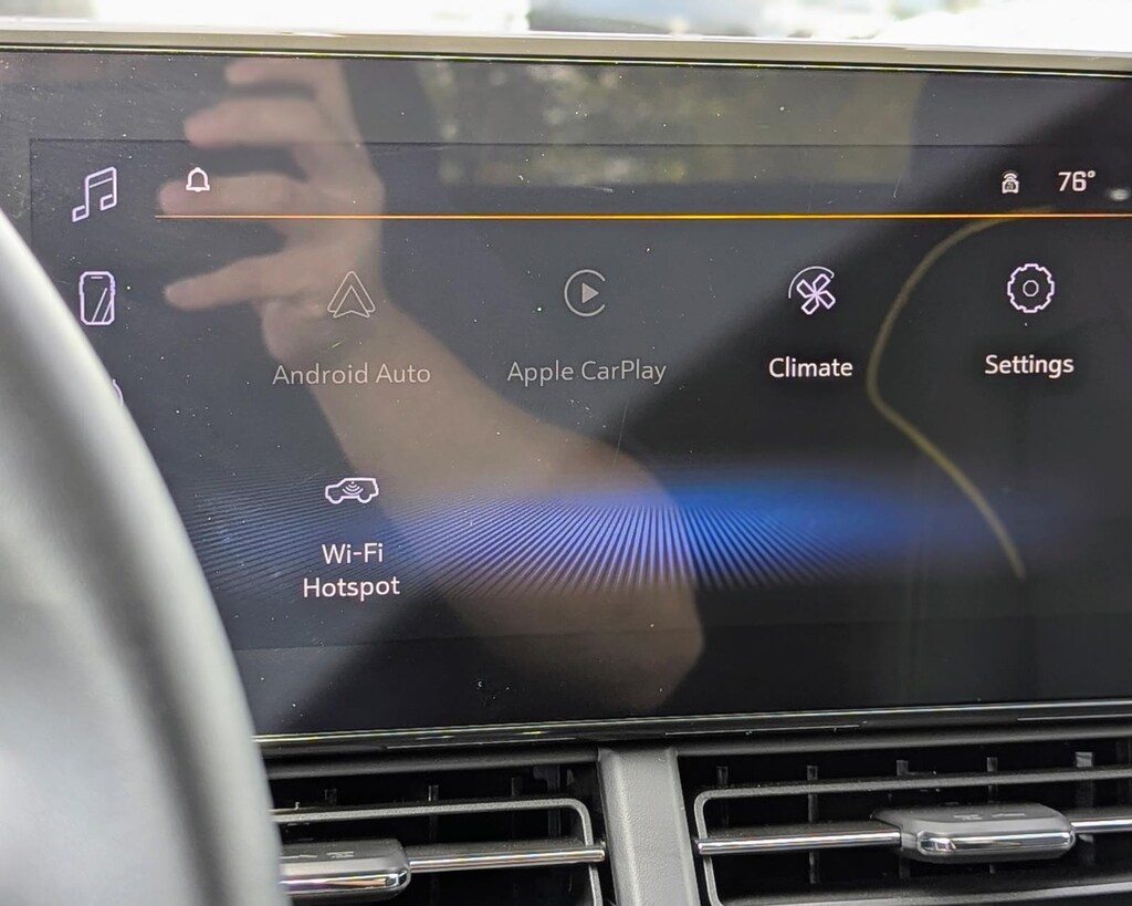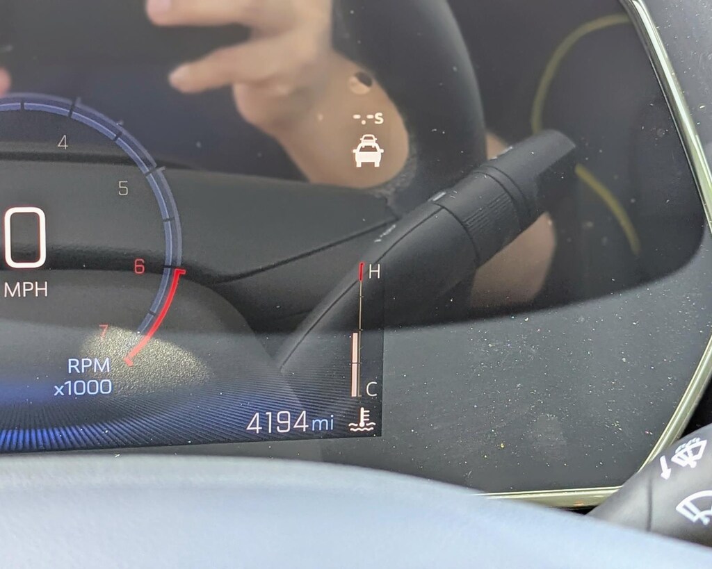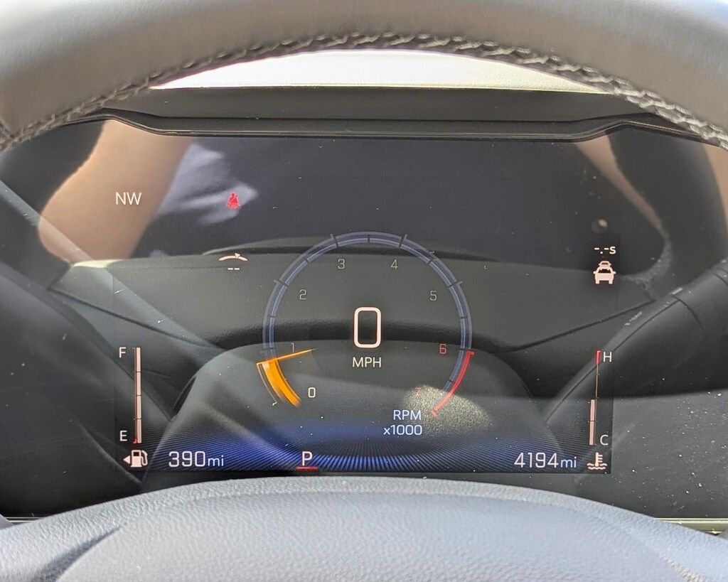 - The vehicle is equipped with a camera that displays an image of the area behind the vehicle on an interior display.