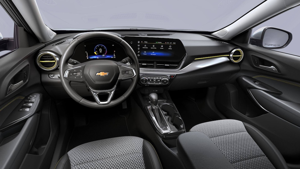 This 2025 Chevrolet Trax LT in MOSAIC BLACK METALLIC with an JET BLACK WITH YELLOW ACCENTS interior color is available and ready for delivery!