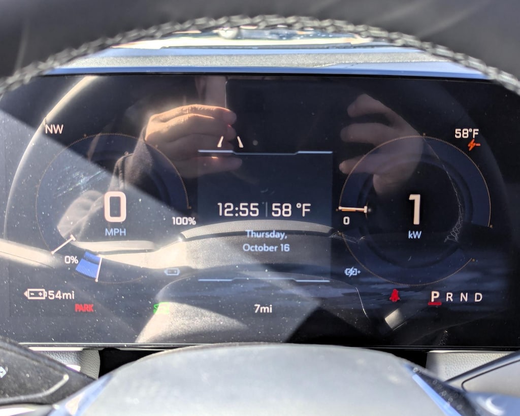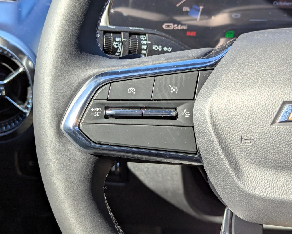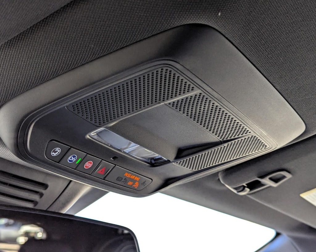 - The vehicle is equipped with a camera that displays an image of the area behind the vehicle on an interior display.