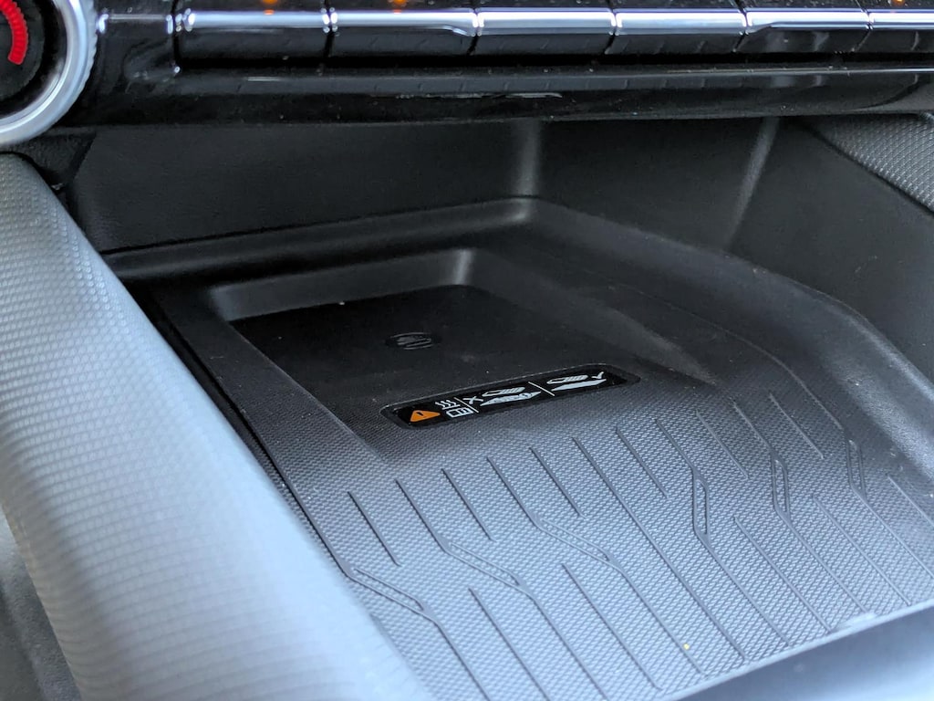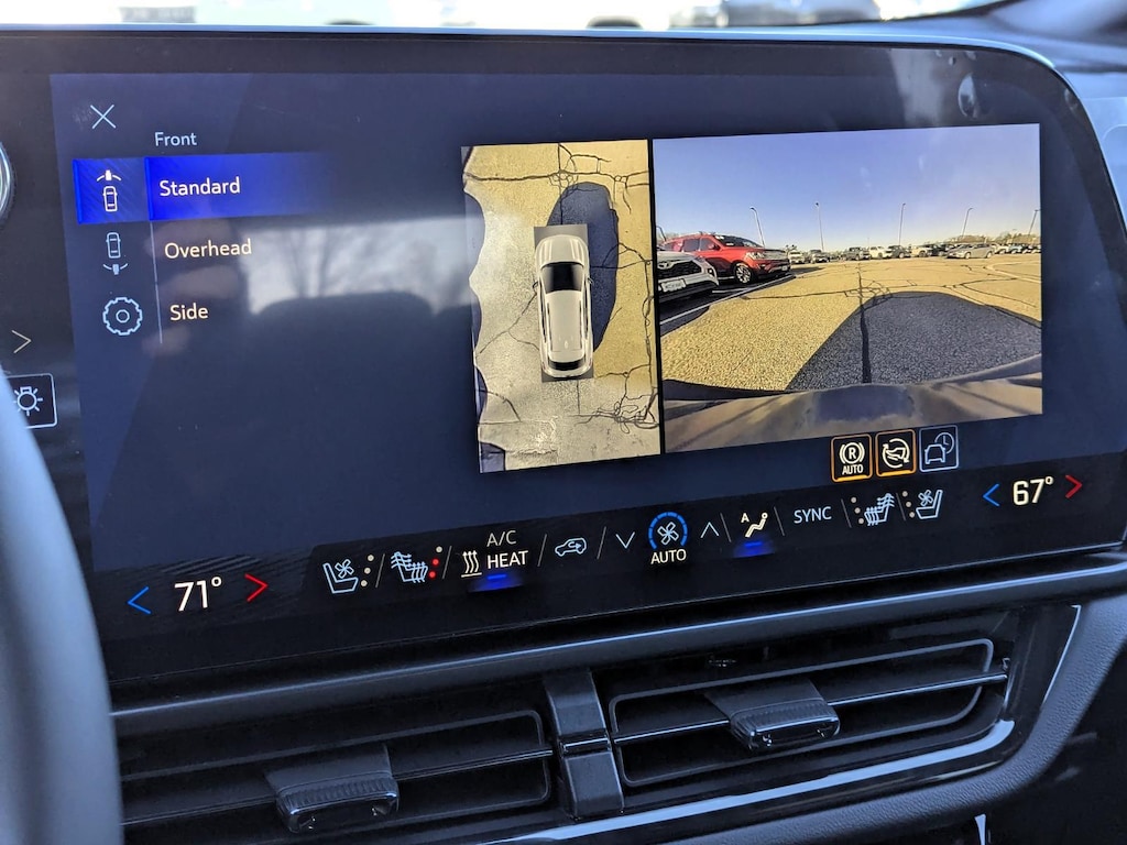 - The vehicle is equipped with a camera that displays an image of the area behind the vehicle on an interior display.