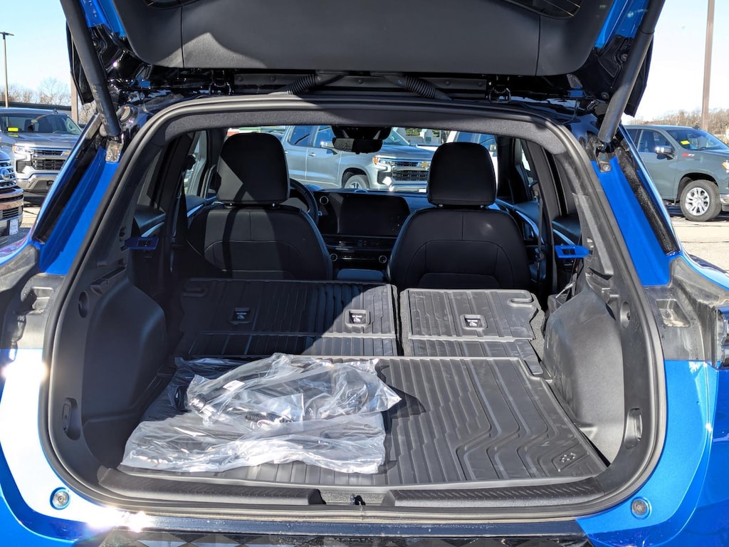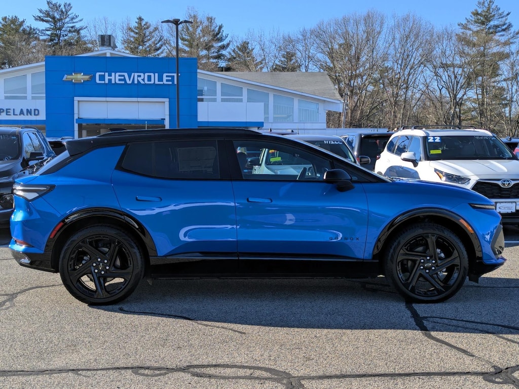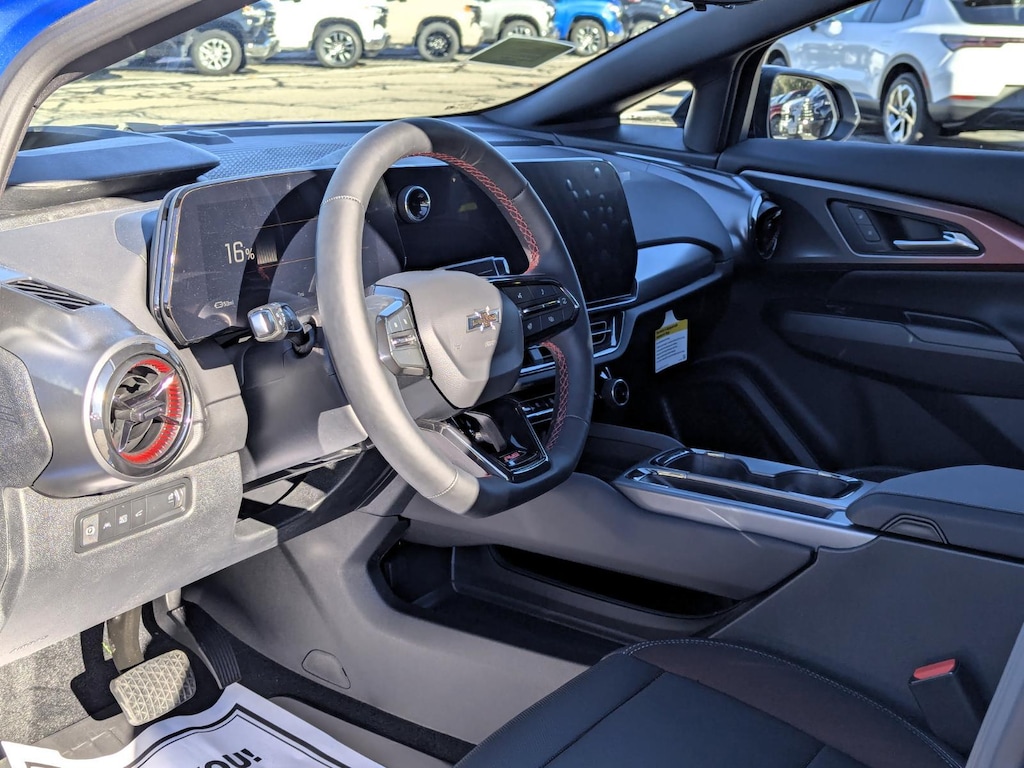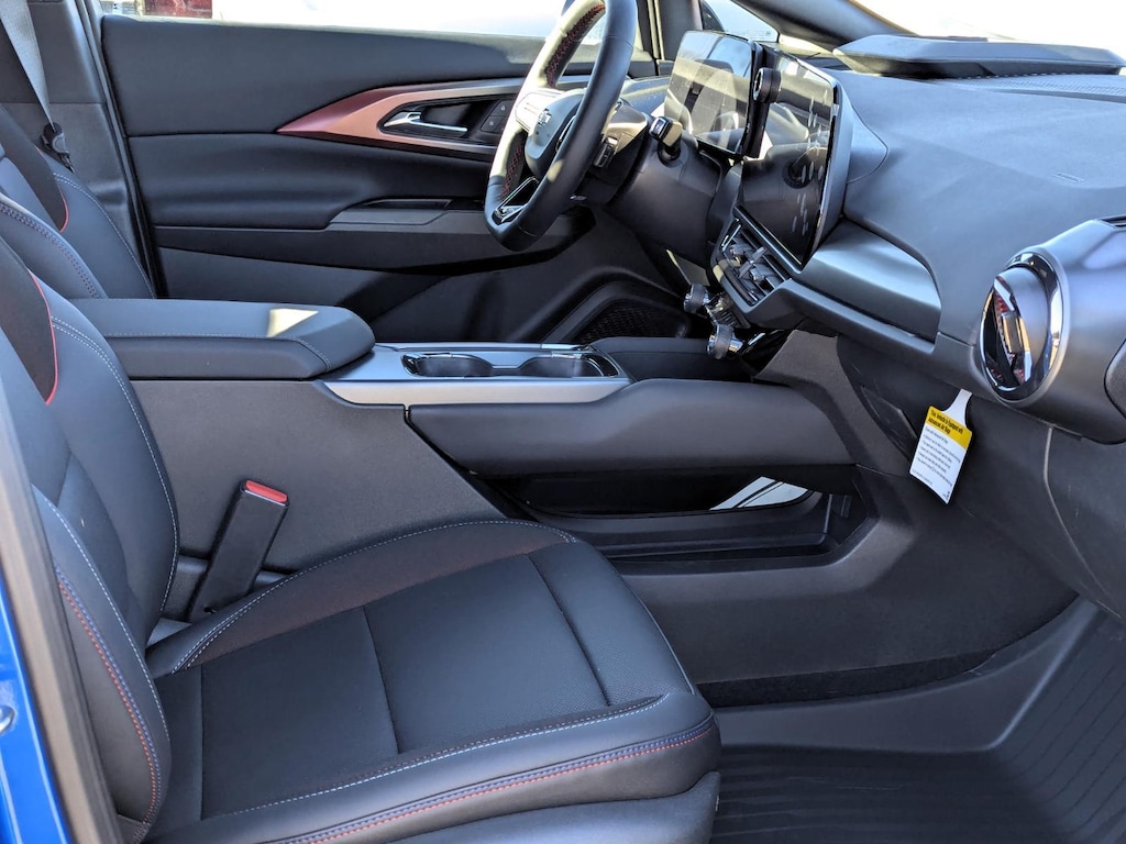 This 2026 Chevrolet Equinox EV RS in Riptide Blue Metallic with an BLK WITH RED ACCENTS EVOT interior color is available and ready for delivery!