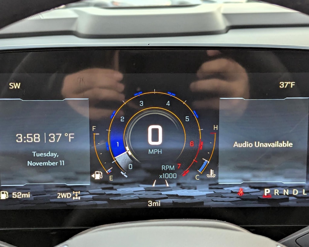 - The vehicle is equipped with a camera that displays an image of the area behind the vehicle on an interior display. The camera is equipped with its own washer.