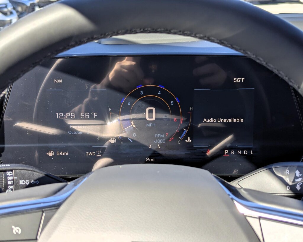 - The vehicle is equipped with a camera that displays an image of the area behind the vehicle on an interior display. The camera is equipped with its own washer.