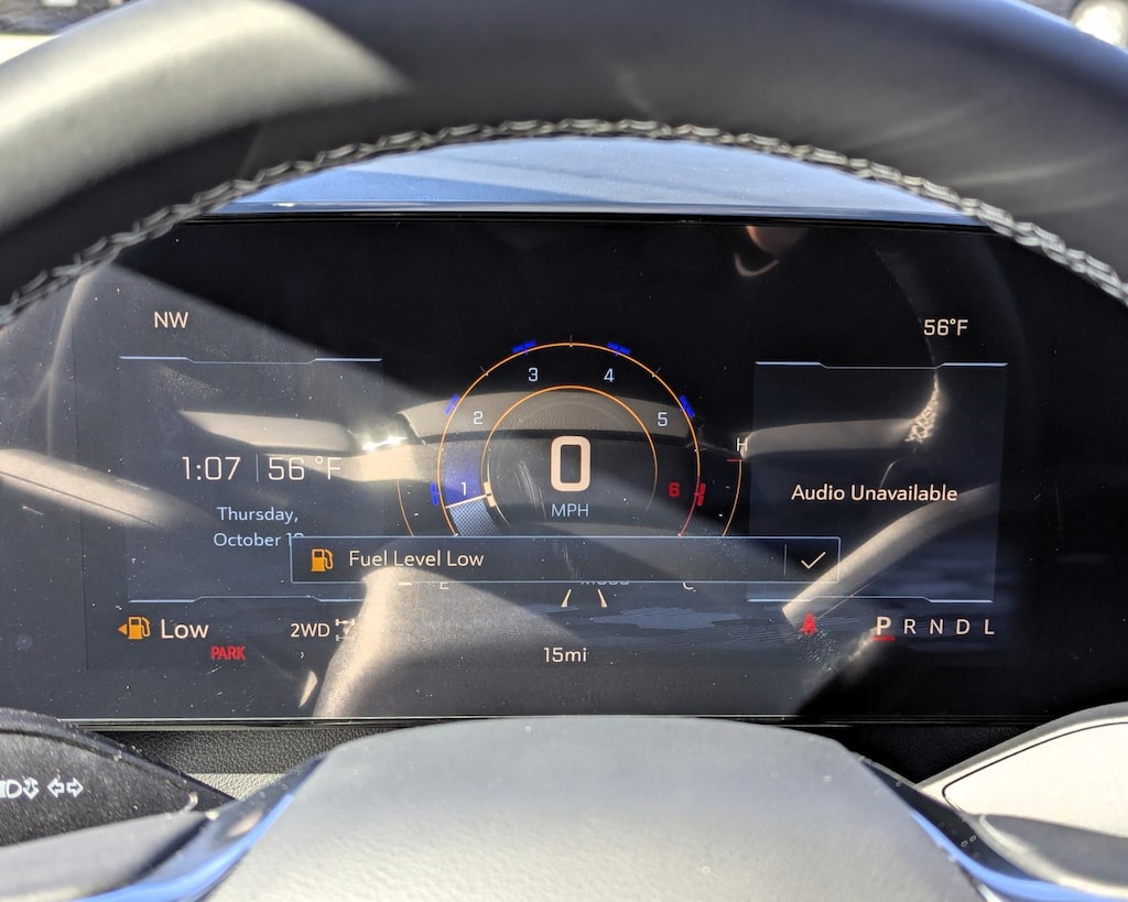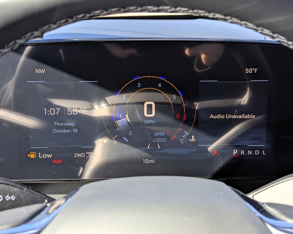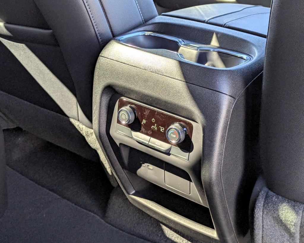 - The vehicle is equipped with a camera that displays an image of the area behind the vehicle on an interior display. The camera is equipped with its own washer.