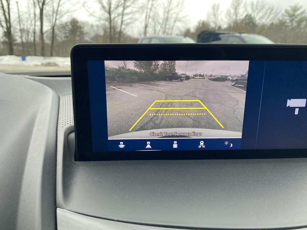 - The vehicle is equipped with a camera that displays an image of the area behind the vehicle on an interior display.