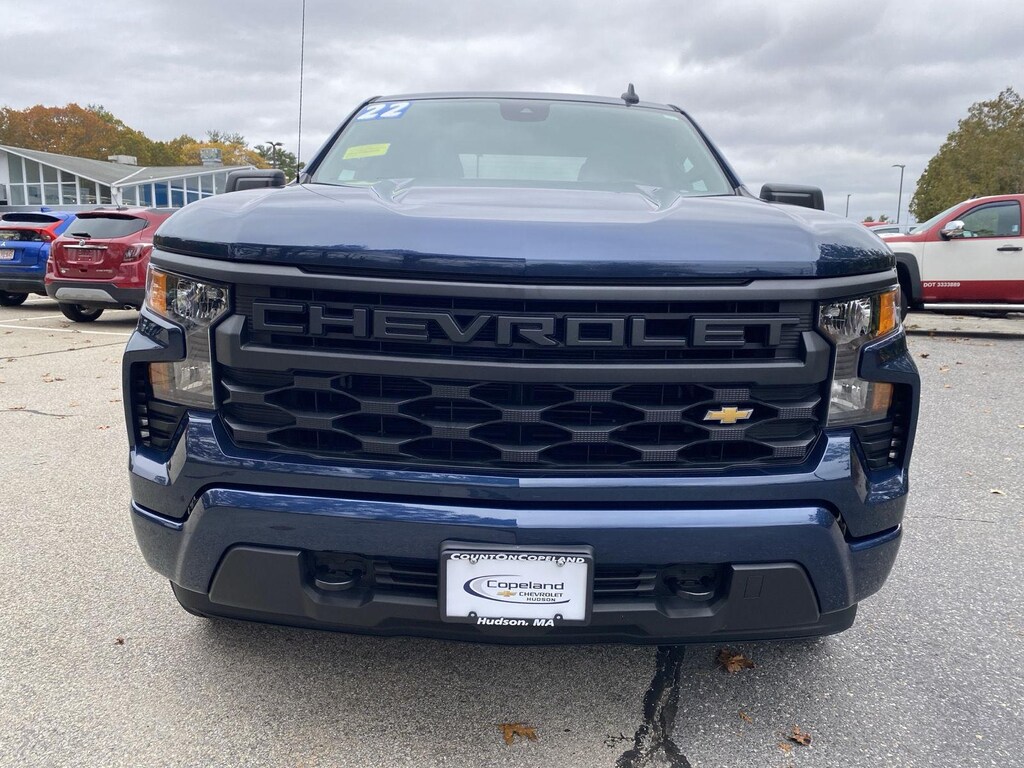 WHY THIS VEHICLE? This Northsky Blue Metallic 2022 Chevrolet Silverado 1500 Custom has an Jet Black interior color. 36,538 miles. Stock Number H1326 Important Package Information Custom Convenience PackageRemote Vehicle Starter SystemElectric Rear-Window DefoggerEZ Lift Power Lock and Release TailgateLED Cargo Area LightingTheft Deterrent System (unauthorized Entry)Custom Value PackageCustom Convenience PackageTrailering PackagePreferred Equipment Group 1CX10-Way Power Driver Seat with LumbarRear 60/40 Folding Bench Seat (folds Up)Power Front Windows with Passenger Express DownPower Rear Windows with Express DownDeep-Tinted GlassRemote Keyless EntryPower Front Windows with Driver Express Up/down40/20/40 Front Split-Bench SeatColor-Keyed Carpeting Floor CoveringFront Rubberized Vinyl Floor MatsRear Rubberized-Vinyl Floor MatsBluetooth For PhoneCompassElectronic Cruise Control120-Volt Instrument Panel Power OutletElectrical Steering Column LockManual Tilt Wheel Steering ColumnSingle-Speed Transfer CaseCustom Value PackageChevy Safety AssistWireless Phone ProjectionStandard TailgateCloth Seat TrimSiriusXM RadioDual Rear USB Ports (charge Only)3.5" Monochromatic Display Driver Info CenterOnStar and Chevrolet Connected Services CapableHD Rear Vision CameraFront Frame-Mounted Black Recovery Hooks Safety and Security The vehicle is equipped with a system that senses, and then prepares, the vehicle and/or occupants, for an impending forward collision. The vehicle constantly monitors the roadway in front of the vehicle and identifies and tracks pedestrians on an interior display. If the system determines a likely impact, it will automatically take preventative steps to avoid hitting the pedestrian. The vehicle is equipped with a camera that displays an image of the area behind the vehicle on an interior display. An active lane departure system alerts the driver of unintended movement of the vehicle out of a designated traffic lane and automatically maintains the vehicle's position within that lane. The vehicle is equipped with sensors which compare vehicle speed to available distance to the vehicle ahead. If the speed exceeds the required distance to stop before colliding with the vehicle ahead, the brakes are automatically readied for maximum braking force once the driver applies the brakes.Technology and Telematics Without the need for a manufacturer specific app to be installed on the smart device, the vehicle infotainment system can access and control functions of a smart device physically plugged-into the vehicle. Mobile devices can wirelessly connect to the internet through the vehicle's private mobile network. This beautiful Northsky Blue Metallic 2022 Chevrolet Silverado 1500 Custom located at Copeland Chevrolet Hudson has been thoroughly inspected by our factory-trained and Certified Service technicians and fully reconditioned for immediate delivery. If you decide to speak with one of our knowledgeable associates - please reference this Stock number H1326. Connect with us now by calling (866) 203-0921. PREVIOUS OWNER HISTORY AS IT IS KNOWN: We're happy to provide all service records and the Silverado 1500's AutoCheck vehicle history report upon request-just ask! ABOUT COPELAND CHEVROLET HUDSON: Copeland Chevrolet Hudson is proud to be the choice Chevrolet dealership in Hudson, Massachusetts. We've been home to a superior customer service experience for almost a century, and we don't plan on changing that anytime soon. Our low-pressure sales team will then help you find the perfect fit for your lifestyle. We have well-versed experts that give our customers some of the best car leasing rates in the area. You can fill out an online application form to get started. When you are ready, stop by our dealership near Worcester, Fitchburg, and Framingham. We are looking forward to helping you! WE CAN'T WAIT TO MEET YOU: We are close to Route 9 and located just one mile from the junctions of I-495 and I-290 which means that we are easy t