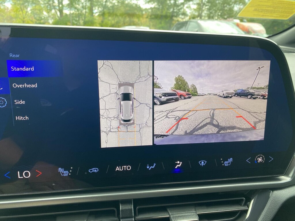 - The vehicle is equipped with a camera that displays an image of the area behind the vehicle on an interior display.