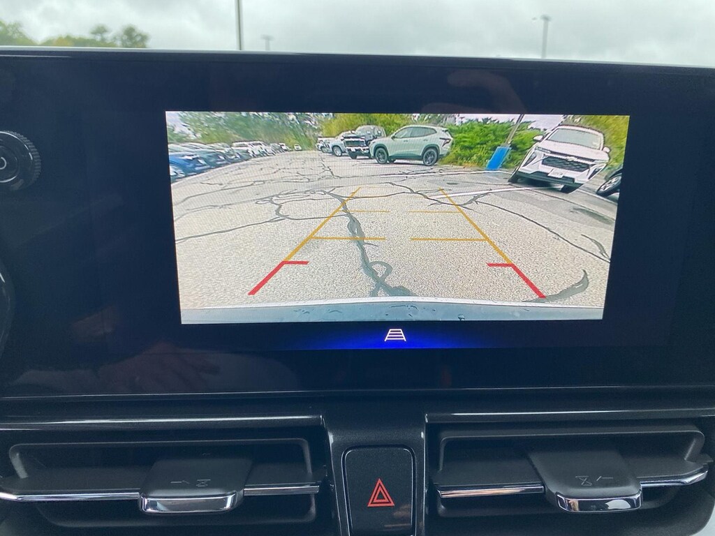 - The vehicle is equipped with a camera that displays an image of the area behind the vehicle on an interior display.