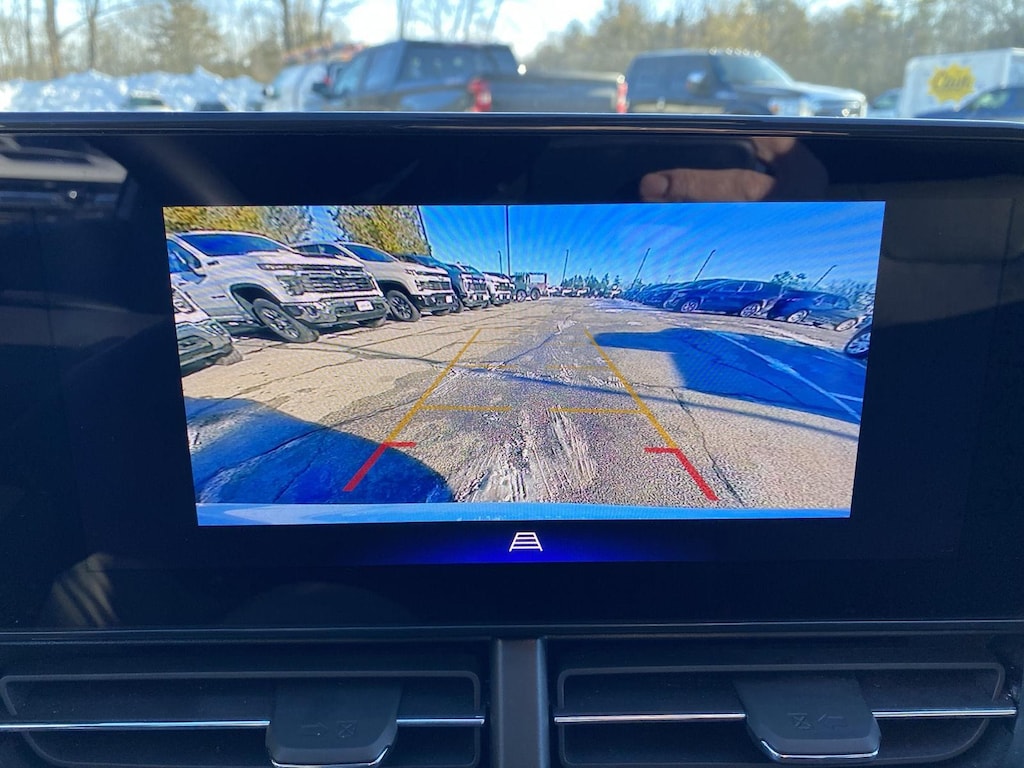 - The vehicle is equipped with a camera that displays an image of the area behind the vehicle on an interior display.