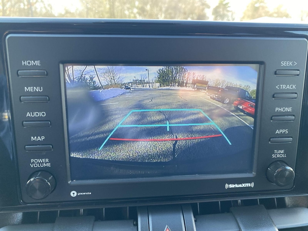 • The vehicle is equipped with a camera that displays an image of the area behind the vehicle on an interior display.